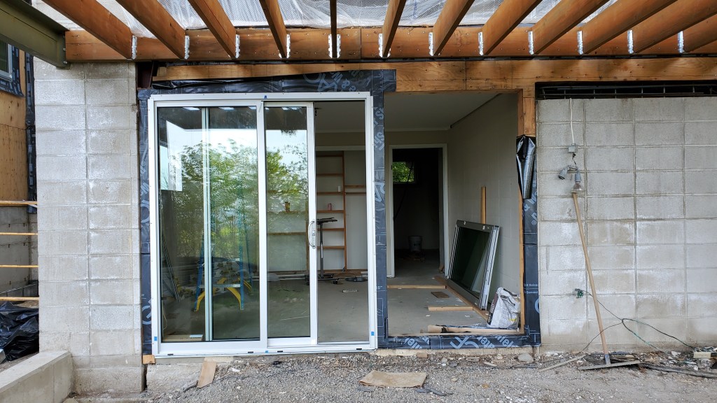 We’ve hit the turning point where it looks like we are finally making significant steps forward. The large slider should be going in any day and that means we’ll be able to finally be water tight in the main part of the house. The kitchen is ordered and scheduled for install as well. We’ll post more pics as we progress. We are also hoping to be back in the near future to see some of this progress in person.