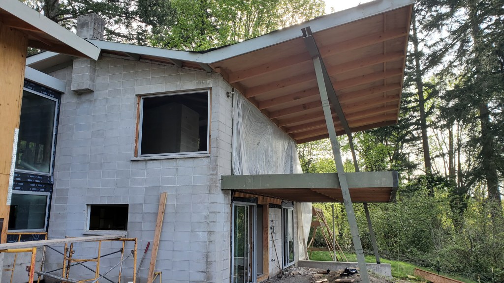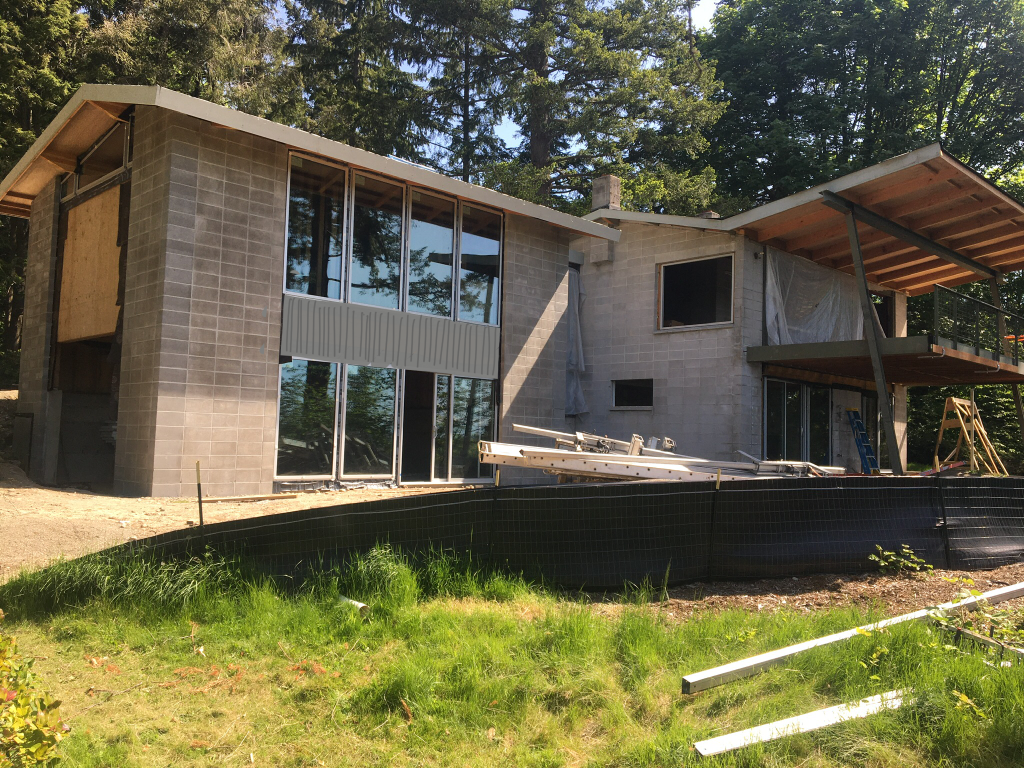 Since our last check-in there has been good progress made on the deck structure, the windows, electrical, plumbing, the CMU block and heating and cooling installation. We’ve also made some design decisions regarding the siding between the CMU block as well as fireplace designs and the screening in the main stairwell. So, let’s get right into sharing the progress.