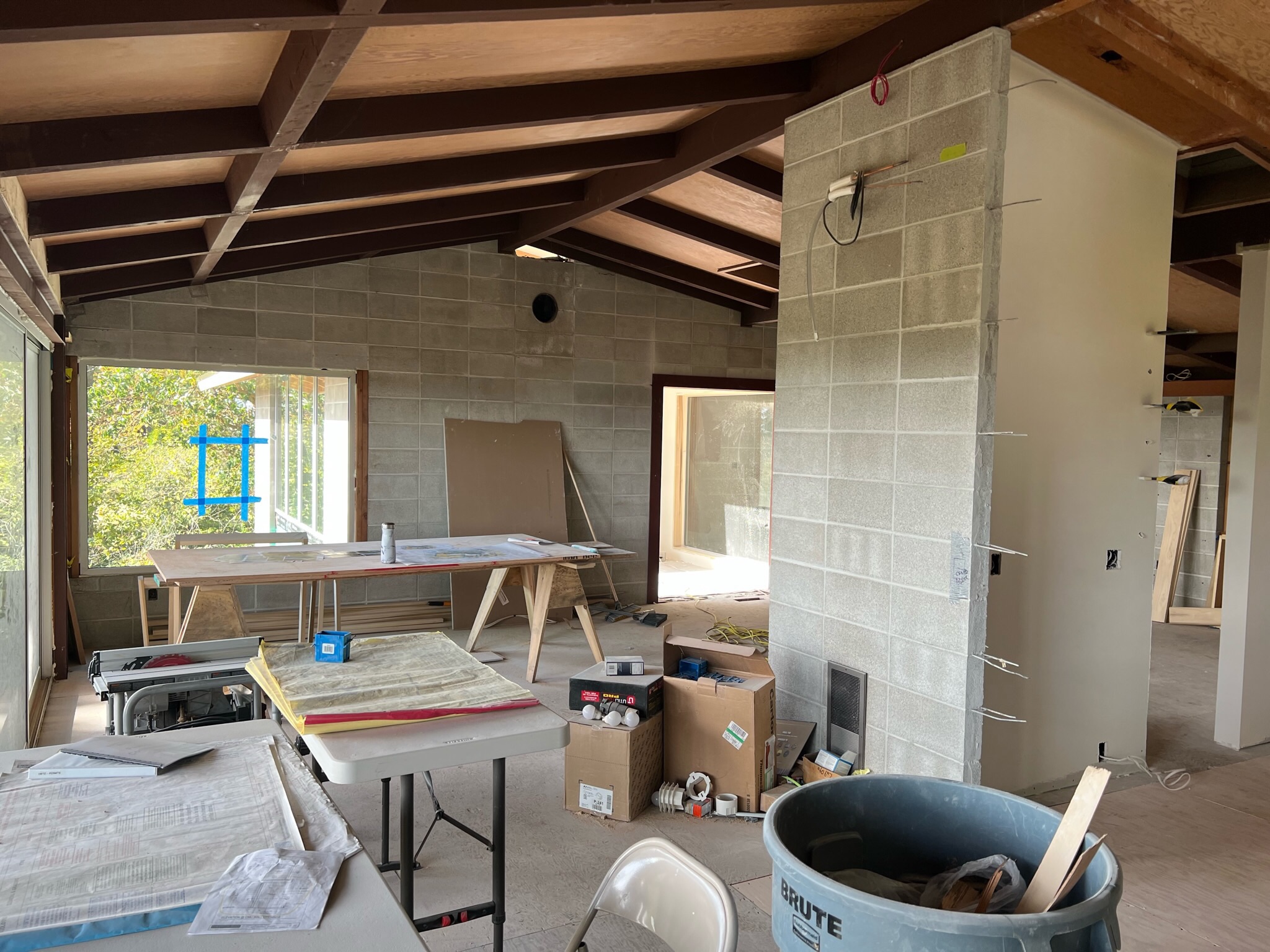 We were fortunate that a work related issue required us to head back to the US and we were able to get exemptions to leave Australia during lockdown. We got our vaccinations and the plan to come back was set. We’d use this opportunity to see up close the progress and get a better sense of where we needed to lean in. We could also start picking some of the lighting, fixtures and hardware as we moved forward towards the finish work.