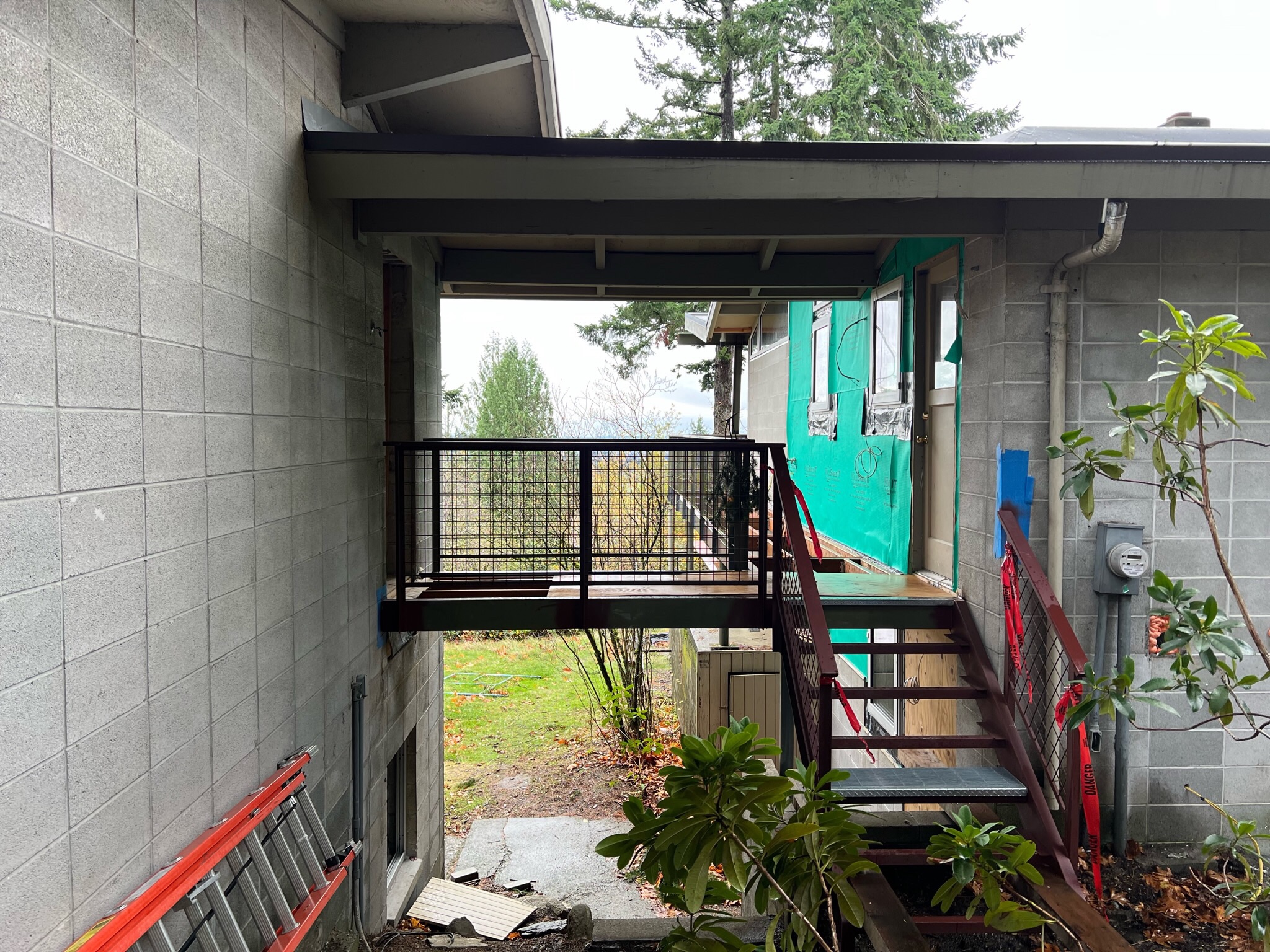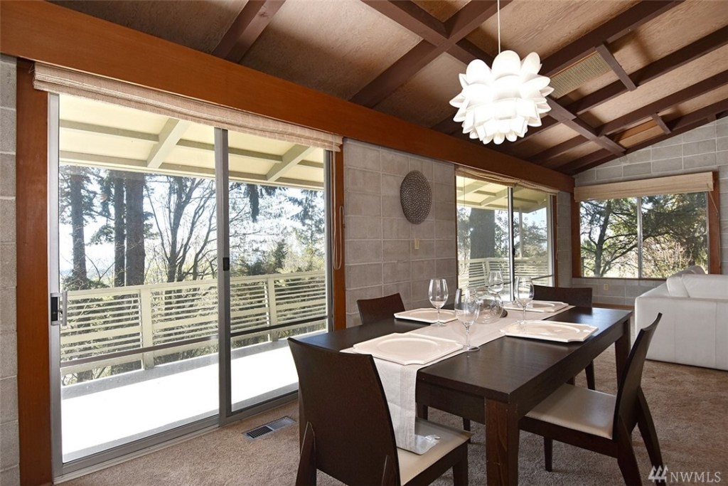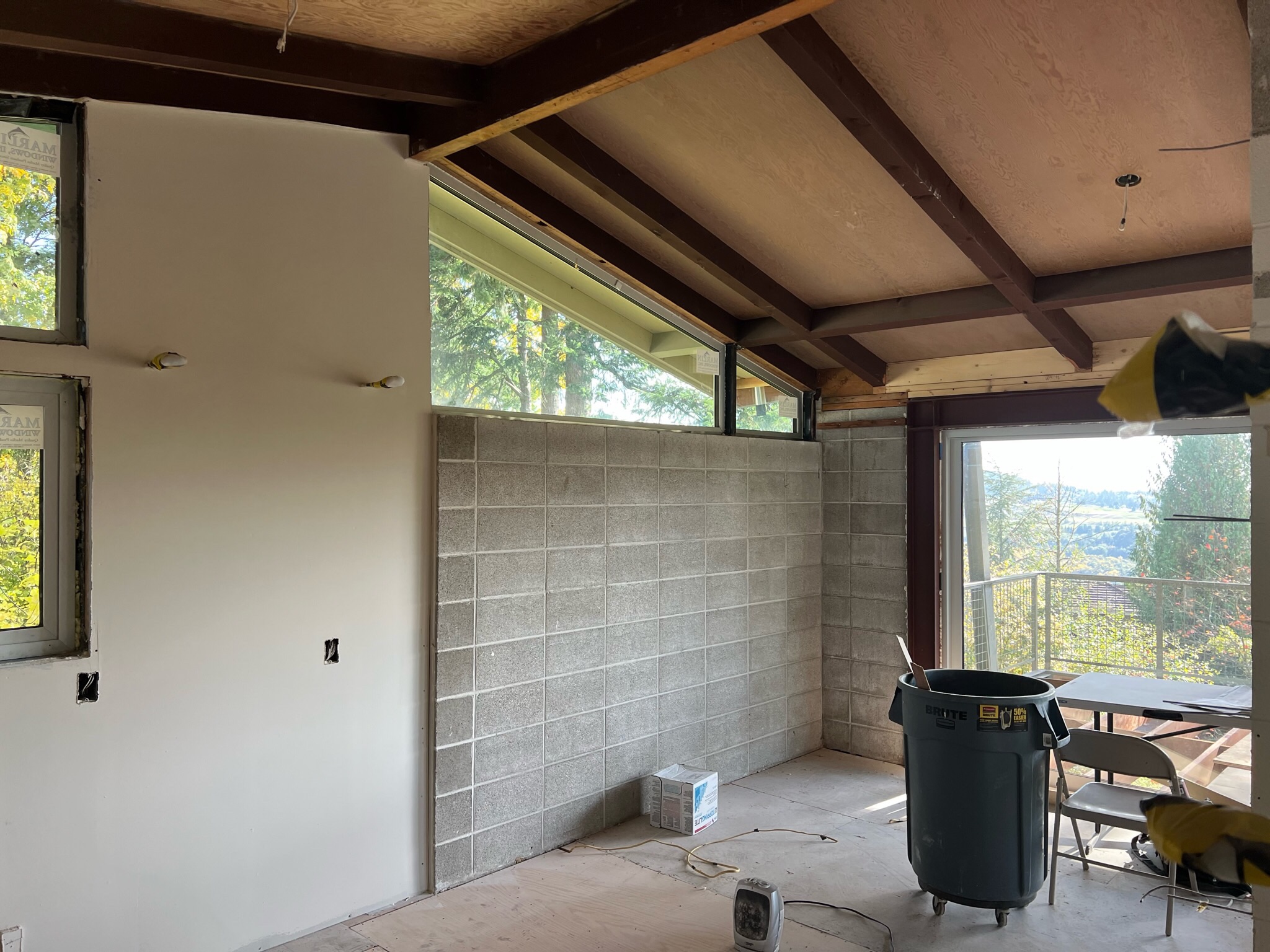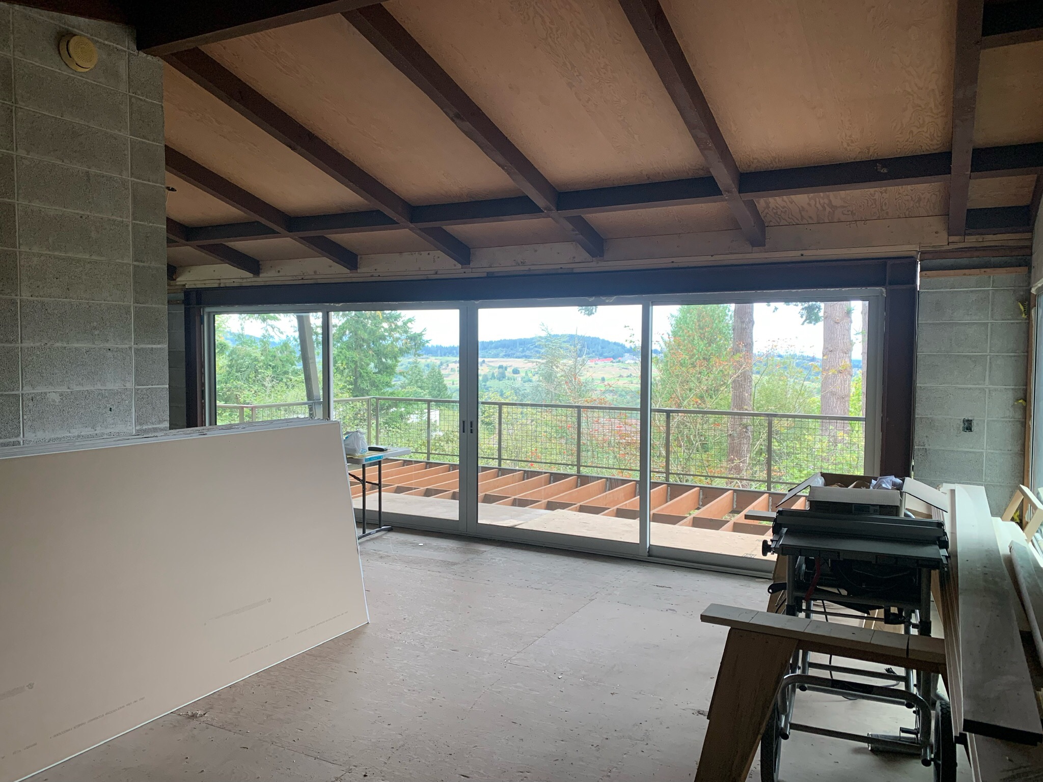 The biggest change is wall to wall four panel sliding glass door which opens from the middle. The views over to Newcastle Golf Course and Mt. Rainier behind it are full exposed now with the CMU wall removed that was in the center previously.