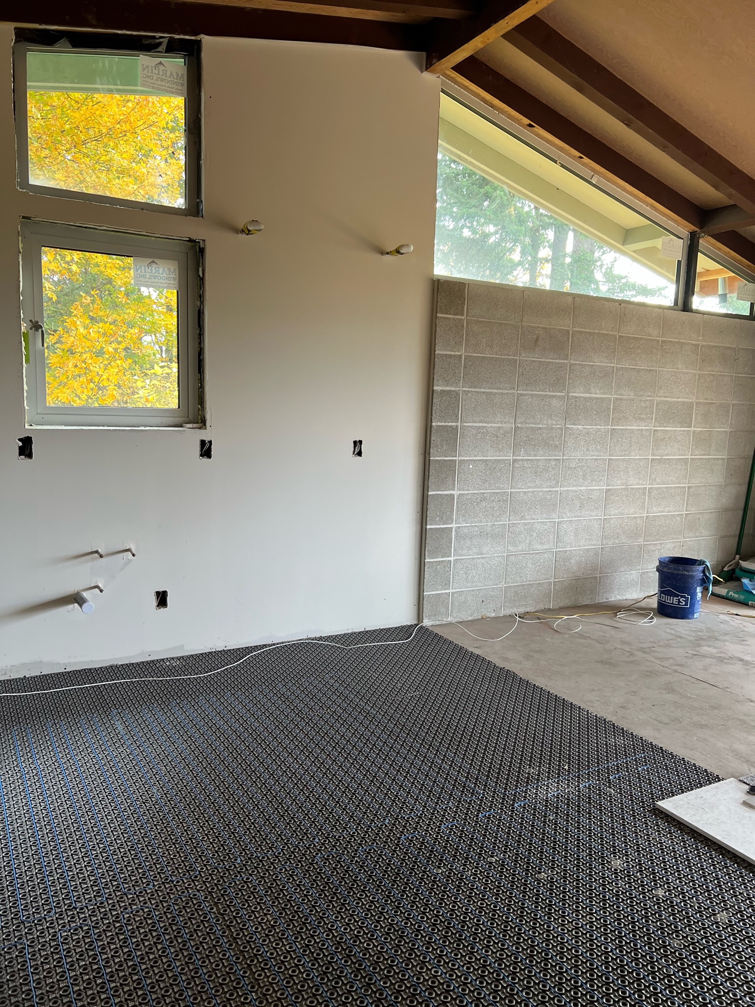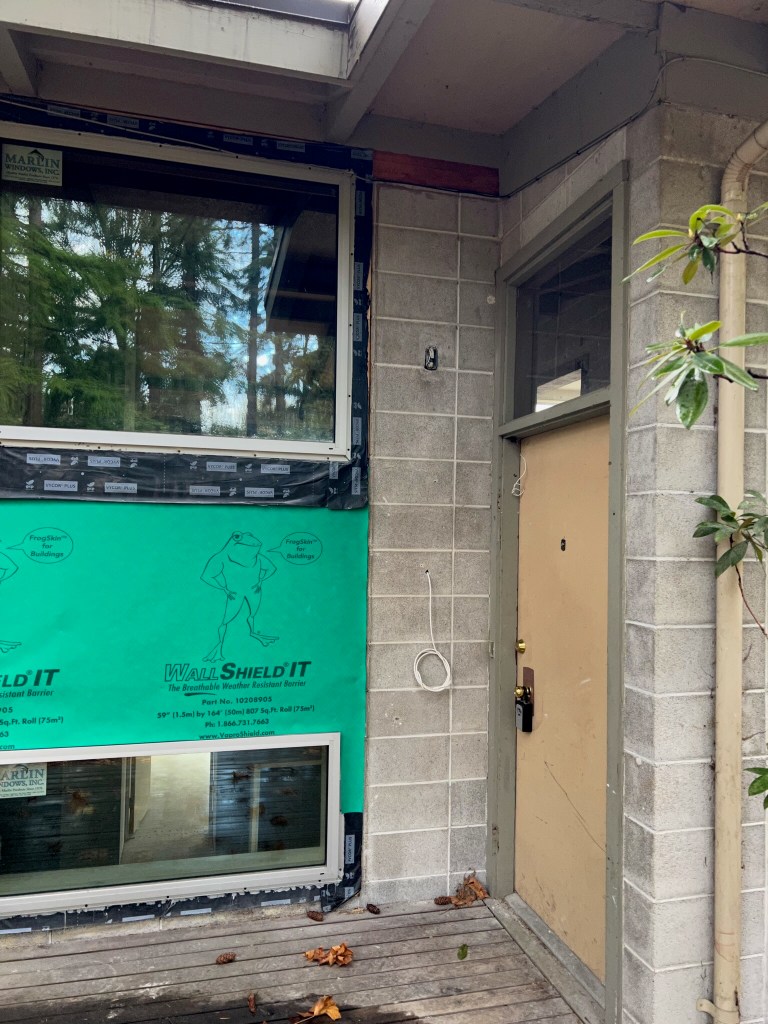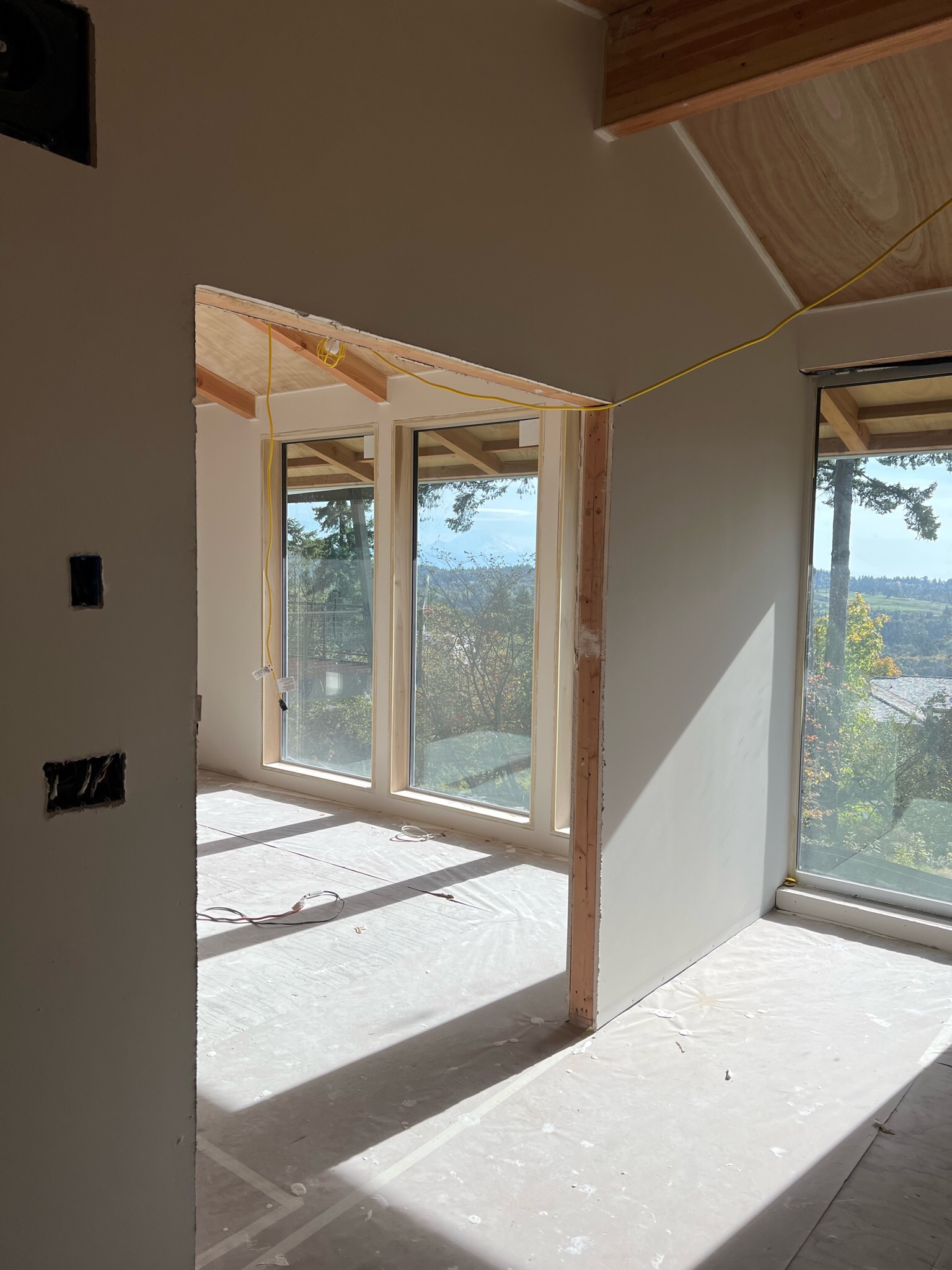 The biggest change is wall to wall four panel sliding glass door which opens from the middle. The views over to Newcastle Golf Course and Mt. Rainier behind it are full exposed now with the CMU wall removed that was in the center previously.