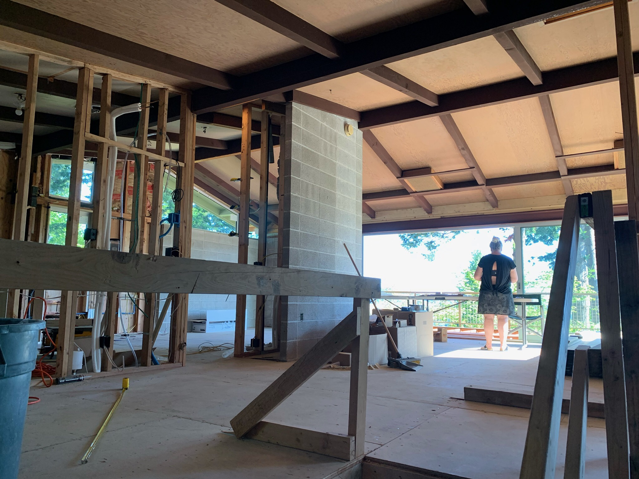 There were some bright spots as well, however, in that the overall plan was looking very good and the general design decisions were working quite well. The extended deck and roof, the large main slider, the addition with the sky bridge, the lower level garage layout and expanding of the downstairs bathroom by taking over the closet from the bedroom all seemed to be good moves. The new windows were an awesome improvement as well. The removal of the duct work in the ceilings on the lower floor increased the head room dramatically and also improved the lower bath access to light from the window. There were many positives about where we were heading.