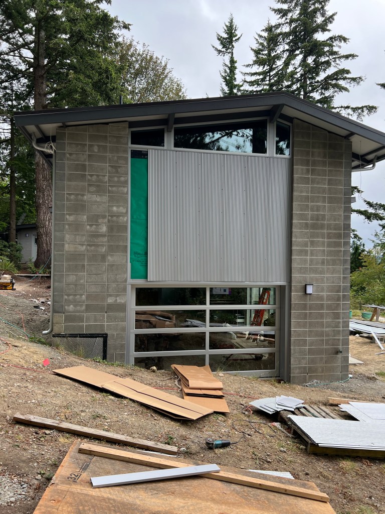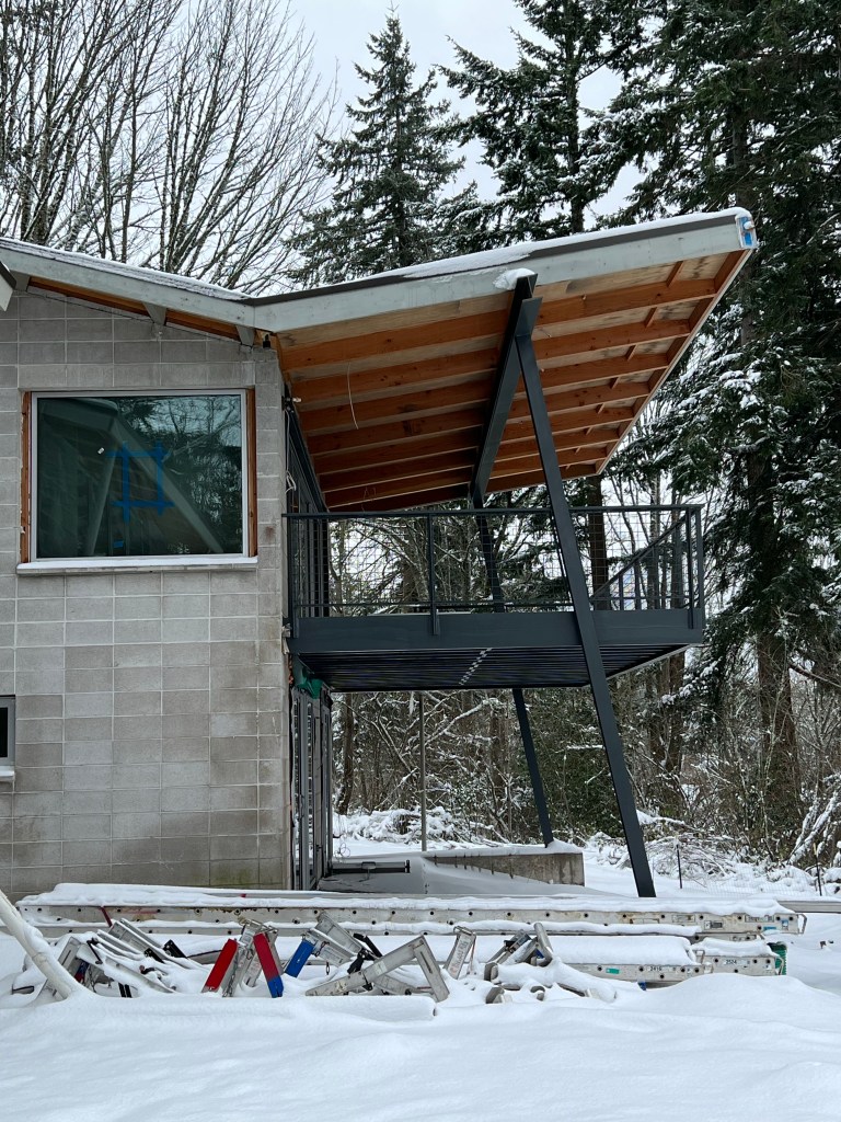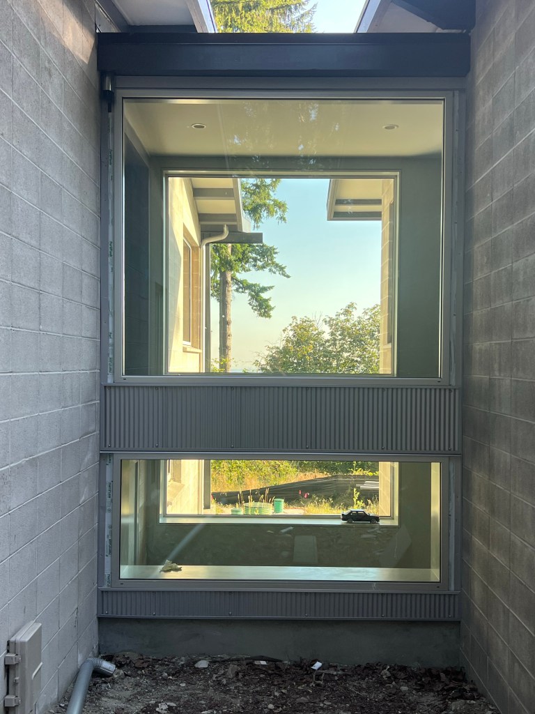 Back to the house. Let’s start with the siding issues. We had chosen a nice corrugated metal that we thought would be low maintenance and go well with the industrial nature of the design. After being told by the vendor in Montana month after month that we were next on the list we decided to pull the plug. 9 months of hearing “it will be next month” is probably more than we should have tolerated but with Covid everything seems to take a little bit longer. We were able to find another vendor that had the same basic material. Then the issue was finding someone who could install it. The crew showed up but after one day it became apparent that they didn’t have the skill set. The lead installer became a soloist and basically did the entire project himself. What should have been a two week install instead dragged out over 2 months. I think he lost his shirt on the project, like so many of our vendors. We are pretty happy with the overall result with just a few nits here and there.